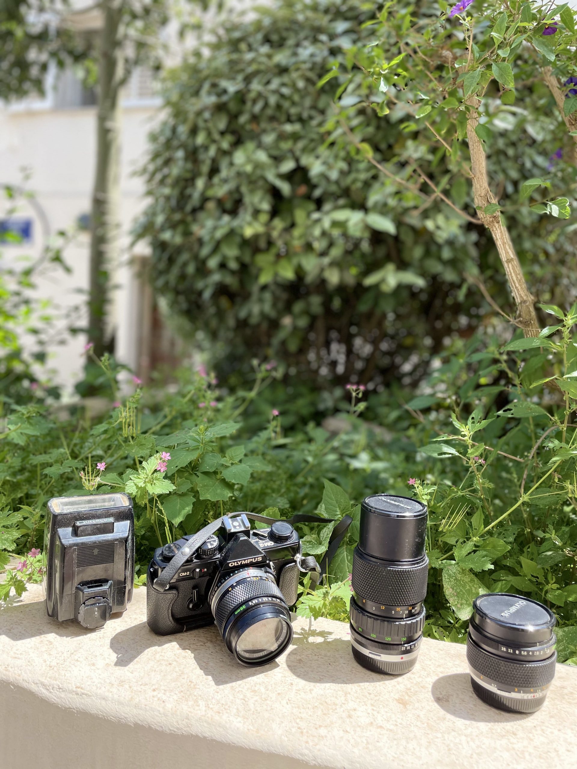 Camera in very good condition sold with two lenses in their respective original boxes, flash and original Olympus leather bag, original lenses, flash and original Olympus leather bag.